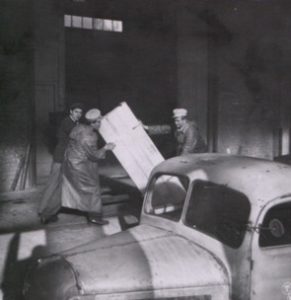 V mesecu decembru 1949 je bila določena preko glavne direkcije večja grupa ljudi iz našega podjetja in mehaničarjev iz Maribora, da potujejo v Nemčijo v svrho prevzema vozil GMC in odpreme istih v našo tovarno. Grupa je odšla iz Maribora v drugi polovici decembra in pričela takoj z odpremo vozil v Maribor. Dne 25. 12. 1949 je prispel prvi vlak z naloženimi kamioni na naš industrijski tir, nato pa so po vrsti sledile še številne kompozicije vlakov, naloženih s kamioni, ki jih je bilo treba takoj razložiti in parkirati na določenem prostoru v bližini tretjega objekta. Tekom celega meseca januarja so prihajala vozila v tovarno, tako da je bil že ves prostor pri tretjem objektu napolnjen z vozili. Potrebno je bilo organizirati vsaj v glavnem prevzem teh pošiljk in primerno tudi sortiranje v svrho lažjega izvzemanja pri remontu. Vršile so se tozadevno že tudi razne konference glede načina odn. metode dela in dogovarjanja glede prostora. Ker pa je vojska že nujno potrebovala določeno število vozil za šolske potrebe, se je za lažje vrste remonta zaenkrat določil prostor v drugem objektu vse dotlej, dokler se dokončno določi prostor za generalni remont.